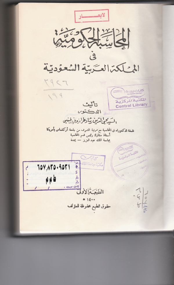 المحاسبة الحكومية في المملكة العربية السعودية / تأليف محيي الدين رشاد محيي الدين طرابزوني.
