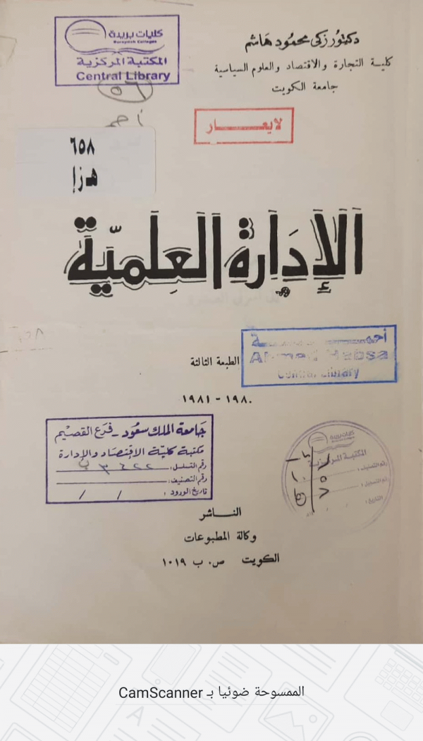 المكتبة المركزية | 658 هـ ز إ (استعراض الرف(يفتح أدناه)) | Not For Loan | 1000004190 |