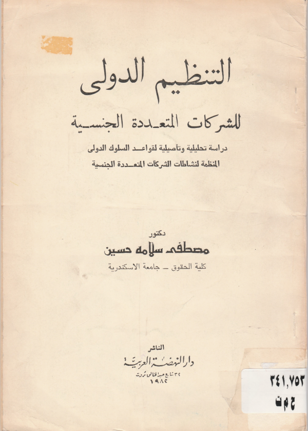 التنظيم الدولي للشركات المتعددة الجنسية / مصطفى سلامة حسين.