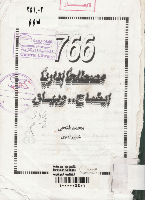766 مصطلحا إداريا : إيضاح .. وبيان / محمد فتحي.