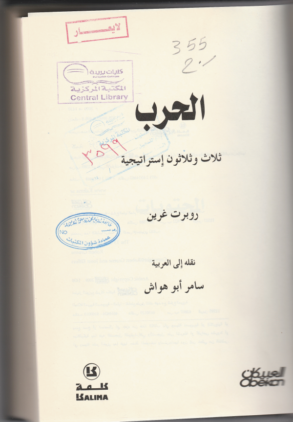 الحرب : ثلاث وثلاثون استراتيجية / روبرت غرين ؛ تعريب سامر أبو هواش.