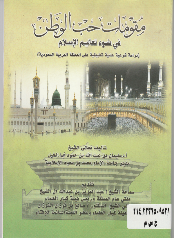 مقومات حب الوطن في ضوء تعاليم الإسلام :‪‪‪‪‪‪‪‪‪ (دراسة شرعية علمية تطبيقية على المملكة العربية السعودية) /‪‪‪‪‪‪‪‪‪ تأليف أ. د. سليمان بن عبد الله بن حمد أبا الخيل ؛ تقديم عبد العزيز بن عبد الله آل الشيخ، صالح بن فوزان الفوزان.‪‪‪‪‪‪‪‪‪ بواسطة