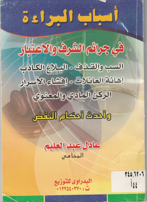 أسباب البراءة في جرائم الشرف والاعتبار : السب والقذف - البلاغ الكاذب - إهانة العائلات - إفشاء الأسرار - الركن المادي والمعنوي وأحكام النقض /
